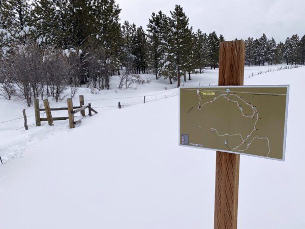 Simms Mesa Loop (Trail #115.1a) is a wonderful winter location for snowshoeing. This trail begins at the Uncompahgre Forest Boundary on the east side of Dave Wood Road. You will find parking, signage, and the trailhead directly north of the parking area. Simms Mesa Loop winds through the beautiful landscape of the Uncompahgre National Forest.